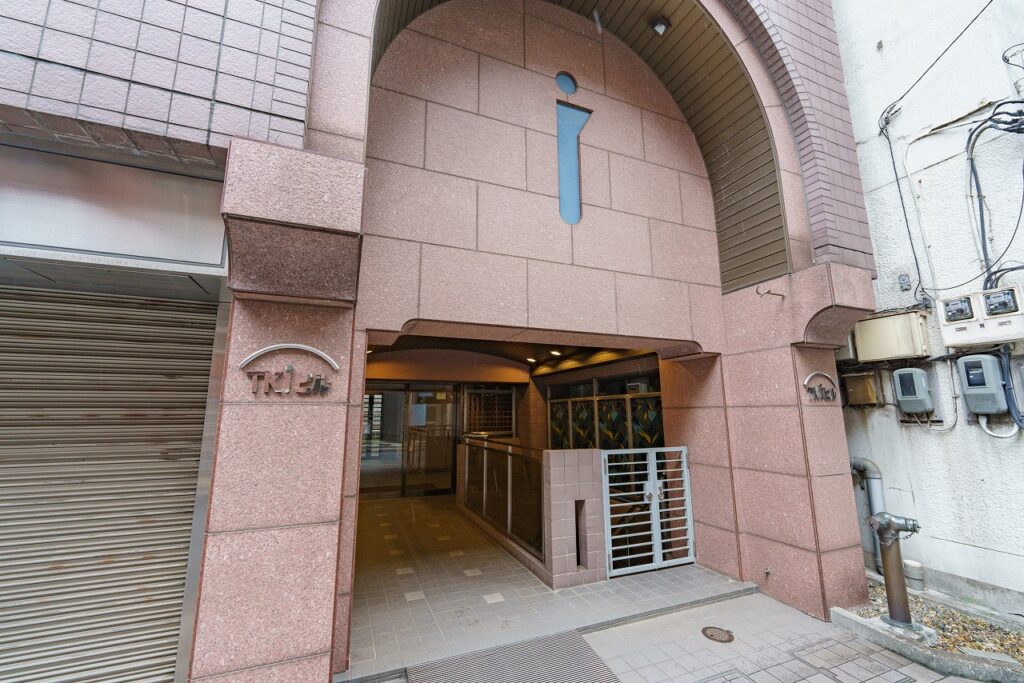 左側の玄関は1階~7階用テナントのため利用できませんのでご注意ください。
